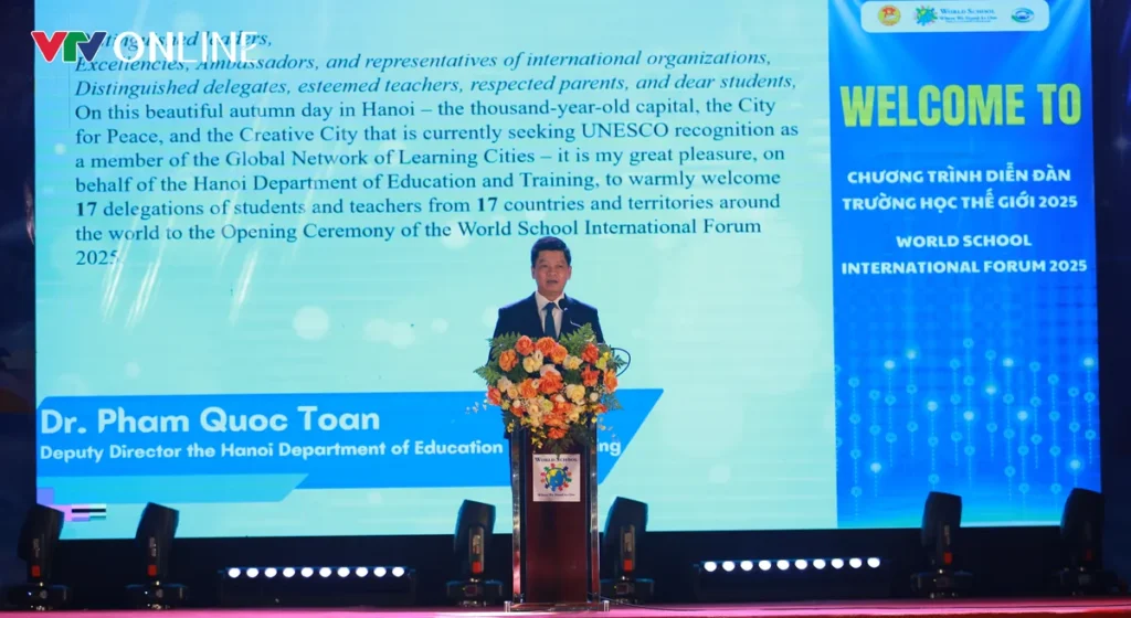 Phát biểu tại diễn đàn, ông Phạm Quốc Toản, Phó Giám đốc Sở GD&ĐT Hà Nội, nhấn mạnh: “Sự kiện hôm nay không chỉ mở ra cơ hội giao lưu, chia sẻ và hợp tác giữa các nền giáo dục, mà còn góp phần tăng cường tình hữu nghị, sự hiểu biết và niềm tin giữa thế hệ trẻ các quốc gia – những công dân toàn cầu của tương lai.” Ông Toản khẳng định việc THCS-THPT Newton được chọn đăng cai “là minh chứng cho tầm vóc, năng lực hội nhập và sự phát triển bền vững của giáo dục Hà Nội; khẳng định định hướng giáo dục mở, sáng tạo, hiện đại của Thành phố”.