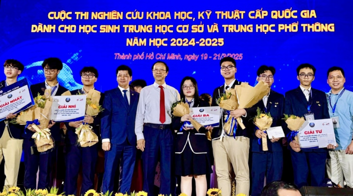 Chiều 21/3 vừa qua, tại Trường Đại học Tôn Đức Thắng đã diễn ra lễ bế mạc và trao giải Cuộc thi nghiên cứu Khoa học, kỹ thuật cấp quốc gia học sinh trung học cơ sở và trung học phổ thông năm học 2024-2025.