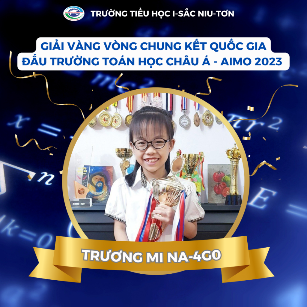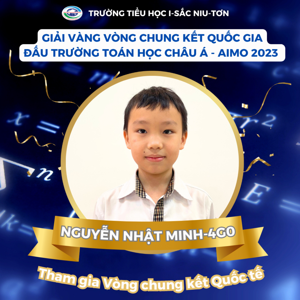 – Học sinh Nguyễn Nhật Minh (Lớp 4G0): Giải Vàng. Đặc biệt, con đang tham gia Vòng Chung kết Quốc tế AIMO tại Malaysia. Thầy cô mong rằng, con sẽ đạt được thành tích nổi bật tại Vòng Chung kết Quốc tế nhé!